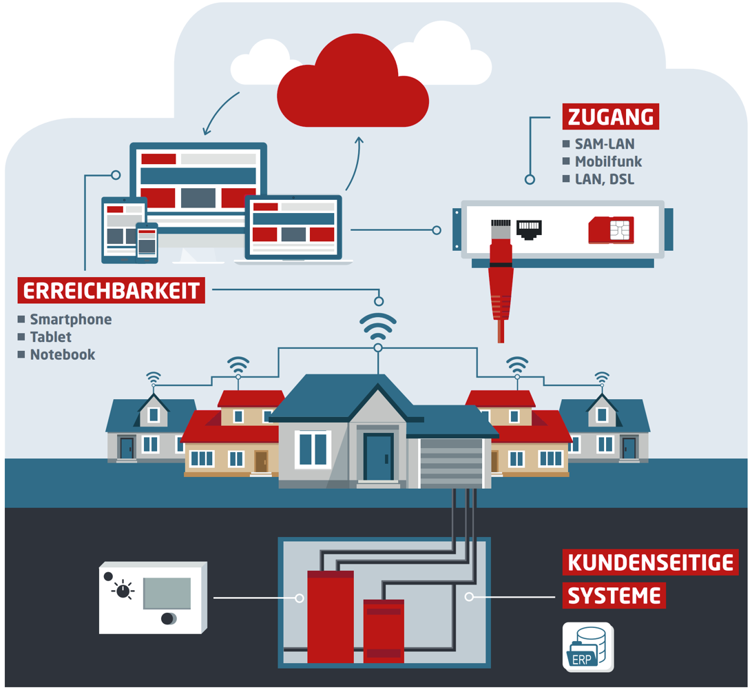 KT-Elektronik bringt Transparenz in Fernwärmenetze. Unsere Technologien bieten für jeden Schritt des Wärmetransports innovative Lösungen. Wir stellen die Hardware und Software: die Heizungsregler vor Ort und mit Gateways von 2G bis 5G, von drahtgebunden bis virtuell. Für die maximale Effizienz haben wir die intelligente Cloud-Lösung SAM District Energy, die Technologien für alle verfügbar macht aber genauso passgenau für jeden Kunden eingerichtet werden kann. Gemeinsam optimieren wir netzweites Monitoring und vermeiden so Versorgungsengpässe. Mit KI-Ansätzen werden Übergabestationen und die gesamte Verteilung optimiert. Das spart Brennstoffkosten und erhöht den Komfort Zuhause.