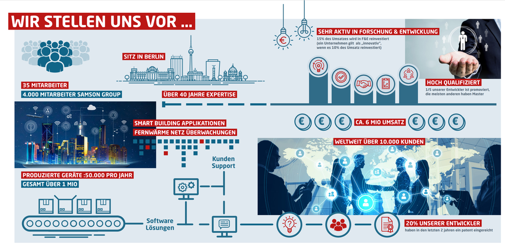 In Berlin-Steglitz entwickelt und produziert KT-Elektronik Geräte und Software für den Energiesektor. Geführt vom dynamischen Geschäftsführer-Duo Dr. Nicola Kleppmann und Dirk Eggers, und getrieben von jungen Mitarbeitenden, wächst unser 35-köpfiges Team stetig. Unserem Gründergeist sind wir treu geblieben, mit zahlreichen Forschungsprojekten, Patenten und Ideen, die uns an die Grenzen unseres Feldes führen, bringen wir uns und unsere Kunden weiter. Wir sind zudem stolzes Mitglied der Samson Group. Das gewährt uns Sicherheiten und den Zugriff auf ein großes Netzwerk und trotzdem treffen wir Entscheidungen unabhängig.